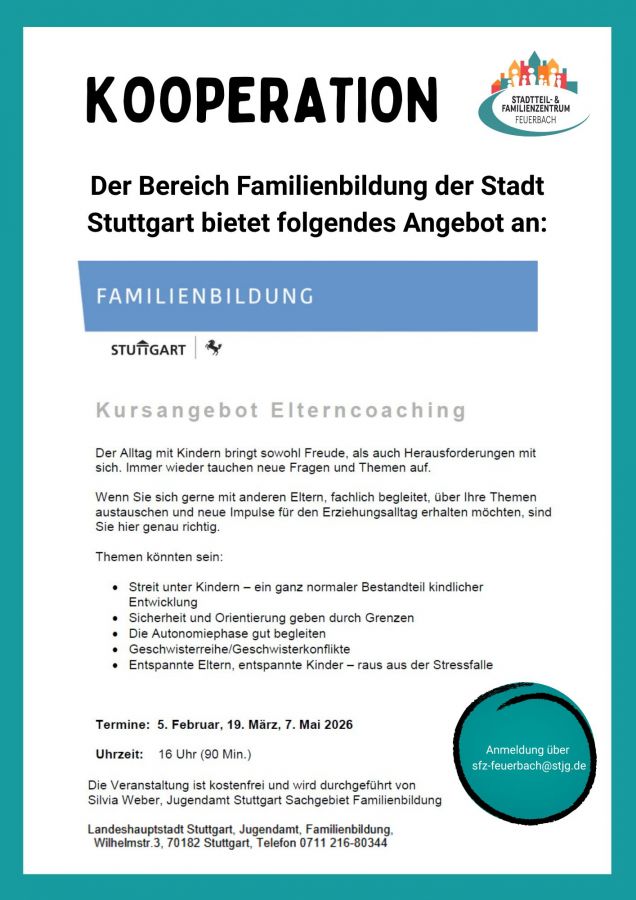 Das Stadtteil- und Familienzentrum Feuerbach ist ein Ort der Begegnung und des Austausches für alle Menschen im Stadtteil.
